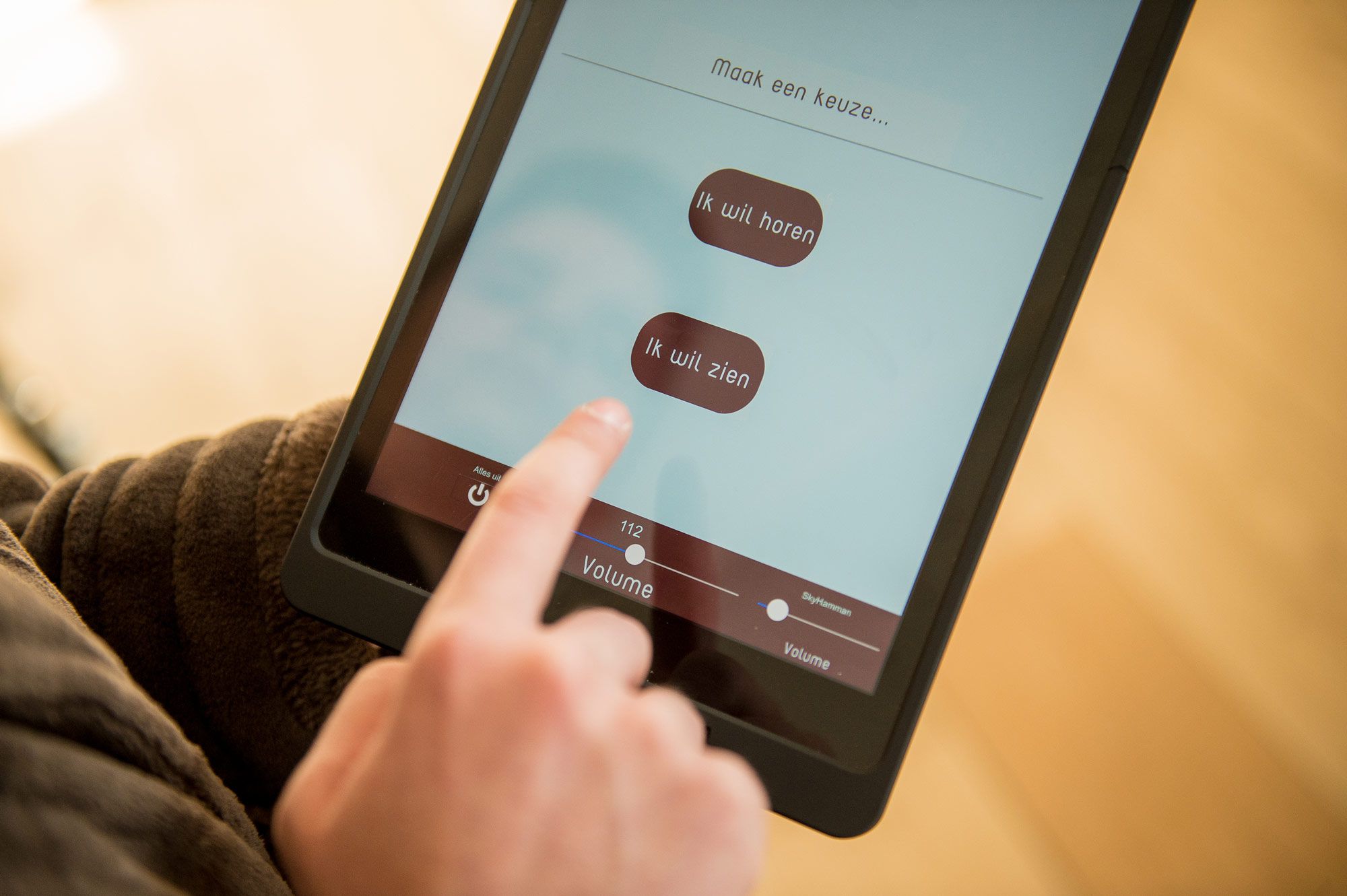 Nooz CEO Wim Vanacker is enorm gehecht aan zijn Nooz huisstijl, ook in het multimedia is dit doorgetrokken. Luidsprekers discreet weggewerkt in Sauna, Hammam en ander meubilair. Pronkstuk zijn natuurlijk de Monitor Audio Gold series High End vloerstaande luidsprekers. Voor de bediening hebben we een volledig layout en gebruiksinterface op maat gemaakt via RTI op een afneembare iPad.